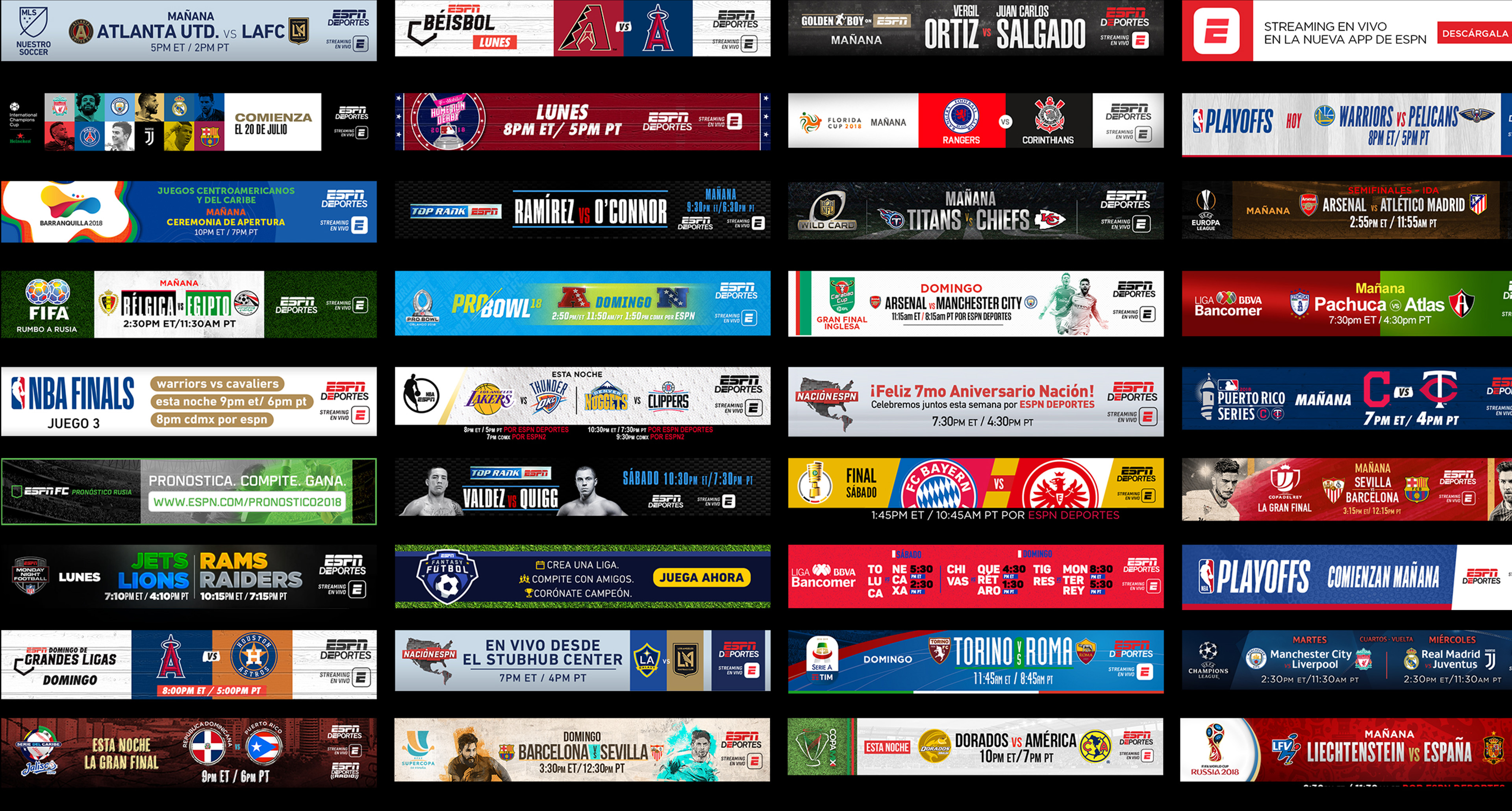 As ESPN Deportes’ Agency of Record, Artek Creative led creative direction and design across major soccer properties including UEFA Champions League, MLS, Copa del Rey, and Supercopa de España. For more than a decade, we partnered with ESPN producers and brand leads to build a unified visual language that captured global football culture while staying vibrant, local, and authentic to fans.