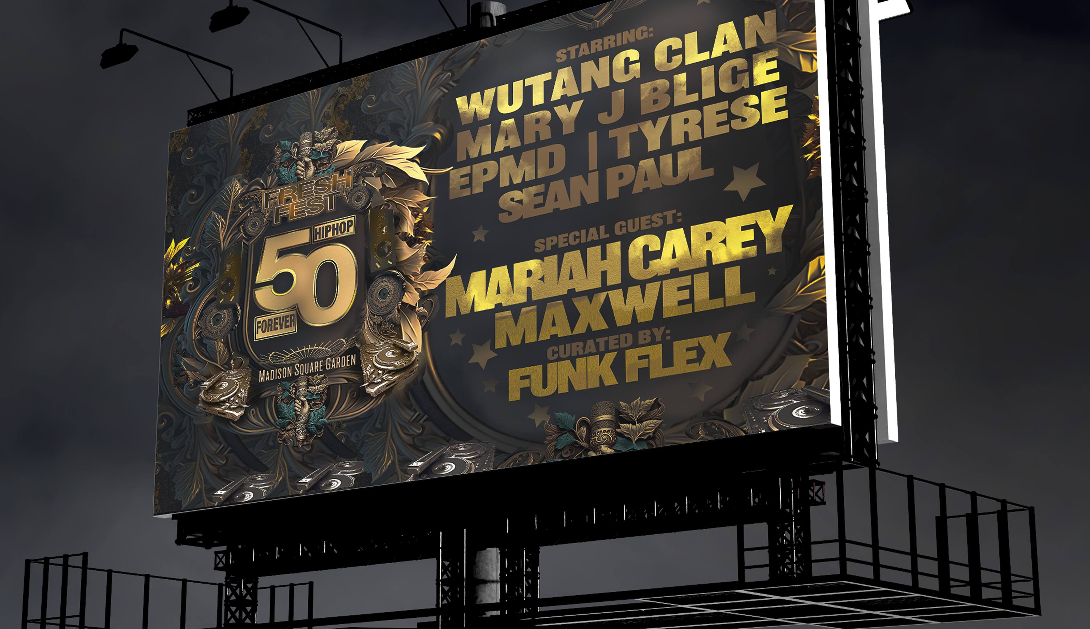 Madison Square Garden's Hip Hop 50 celebration honored the genre’s golden anniversary with a lineup of icons including Wu-Tang Clan, Mary J. Blige, and Mariah Carey. The visual identity had to carry the soul of hip hop—raw, expressive, and reverent.