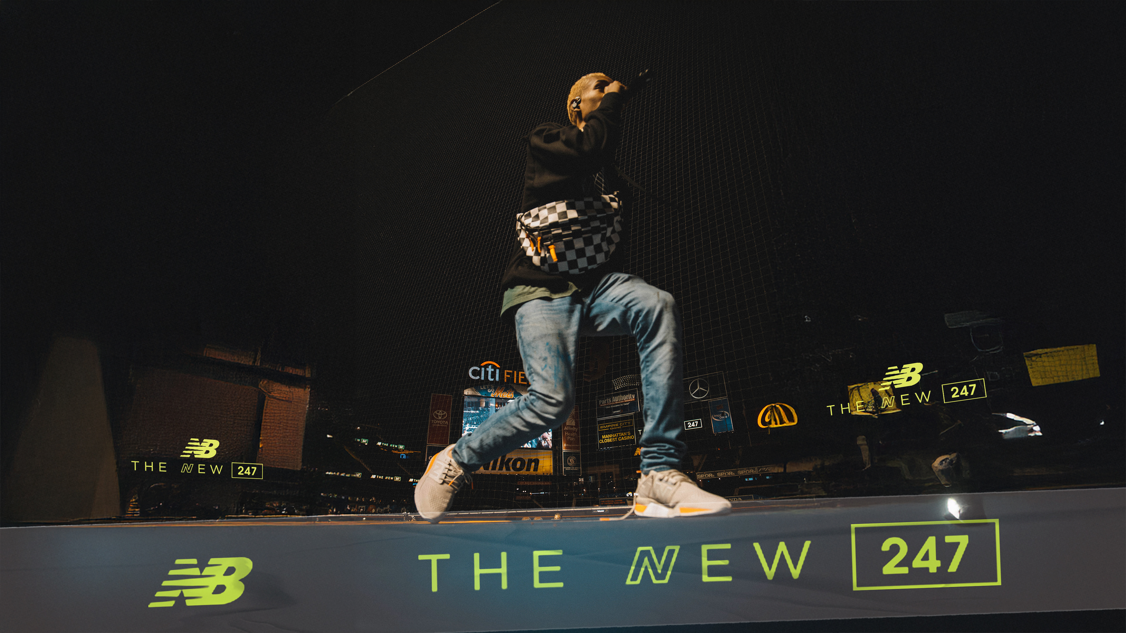 To celebrate the release of the New Balance 247, we executed a full creative takeover at Citi Field—transforming the stadium into a branded guest experience with live performances by Busta Rhymes and Jaden Smith, supported by a content rollout to extend the moment beyond the venue.